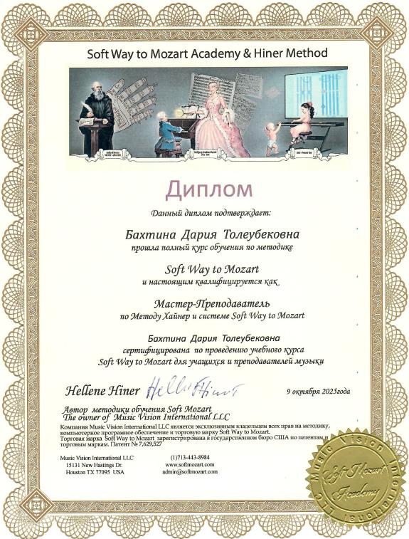 сертифицированный преподаватель по системе Софт Моцарт.