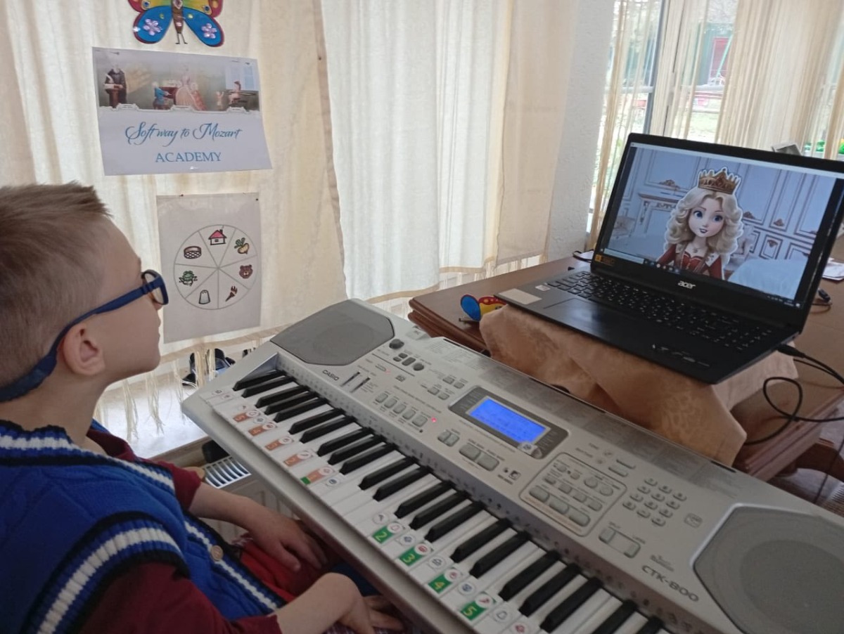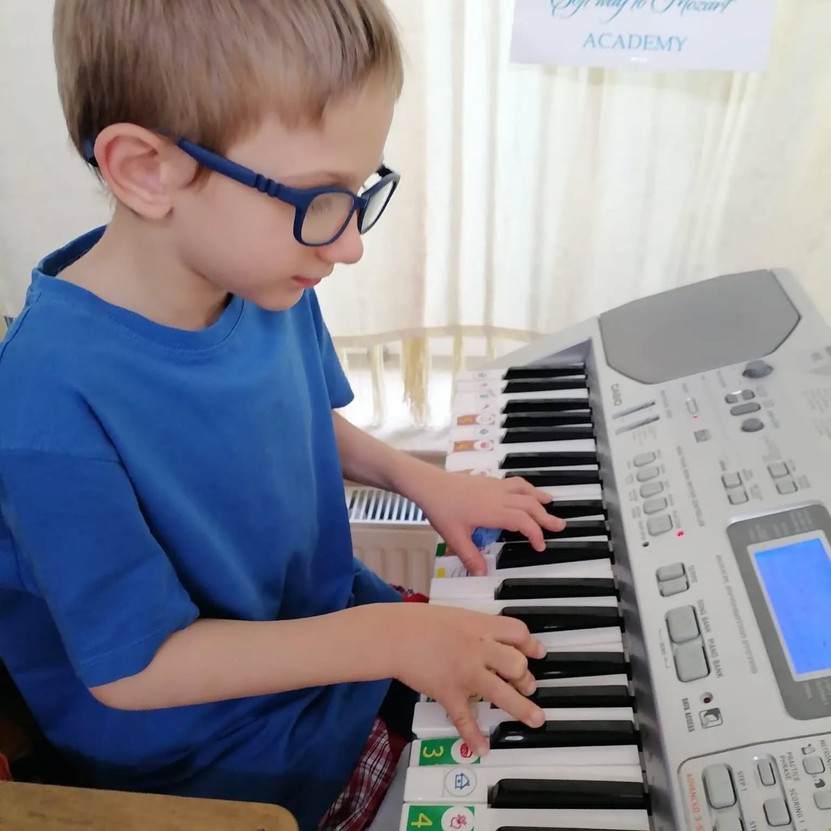 Саша стал заниматься музыкой по программе софт Моцарт с октября 2022 г. с помощью бабушки Светланы Яковлевны, которая параллельно училась у меня дома.