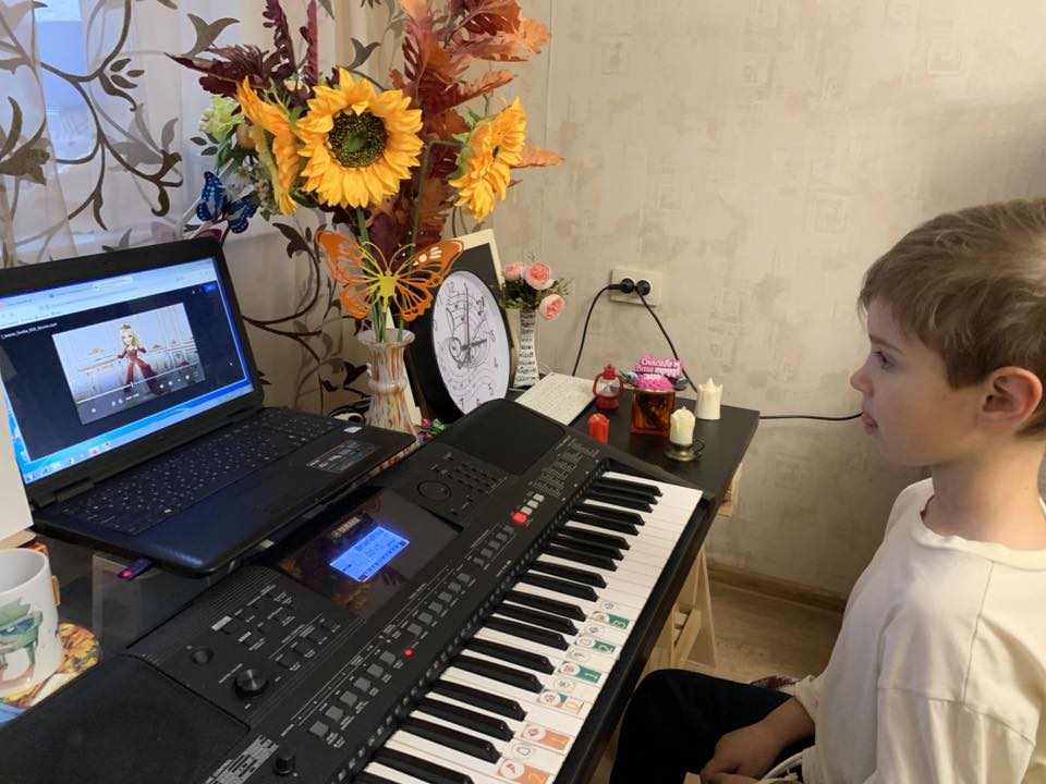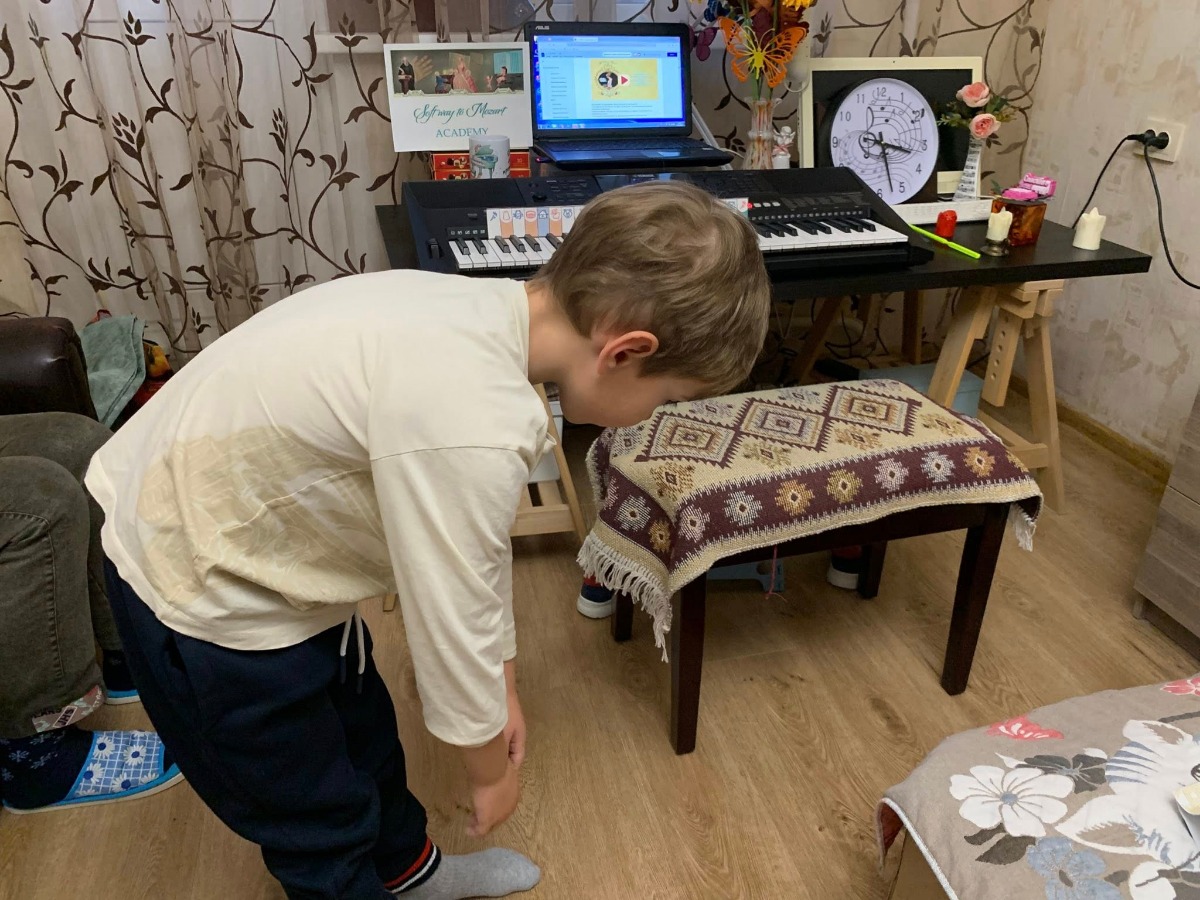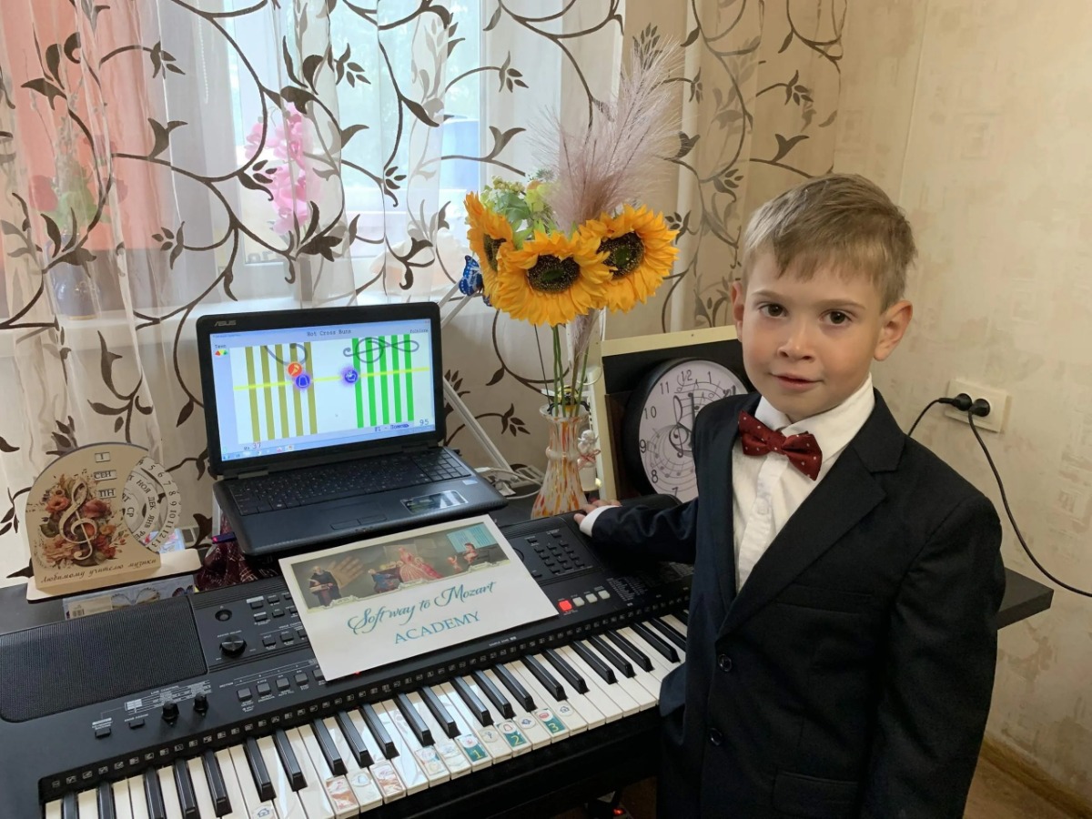 Занимается музыкой по программе софт Моцарт с декабря 2024 г, но с перерывами, семья часто уезжает отдыхать на 2 недели.