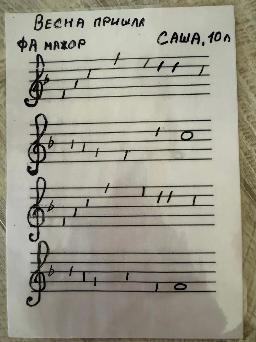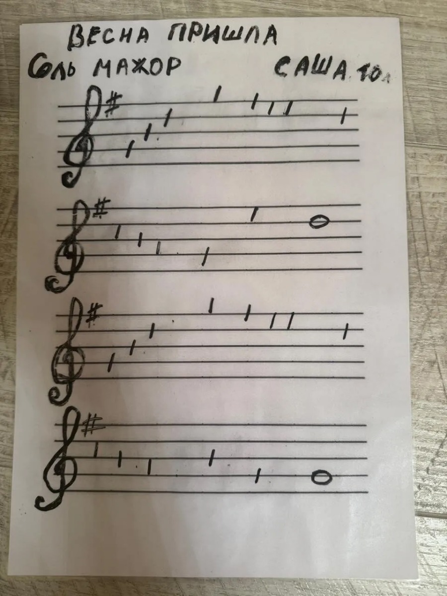 Запись нотами наизусть песенки «Весна пришла» в ДО мажоре.