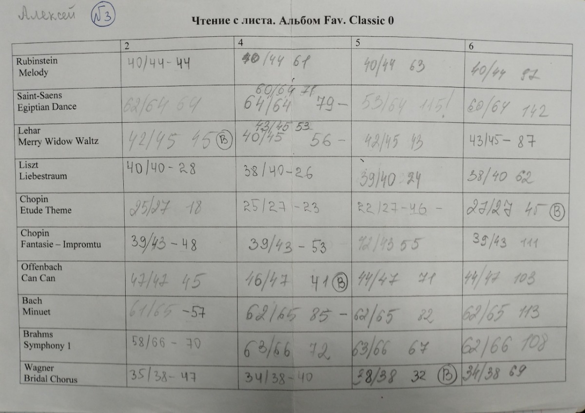 Чтение с листа альбом Favorite Classic 0 (таблица с результатами, 4 видео)