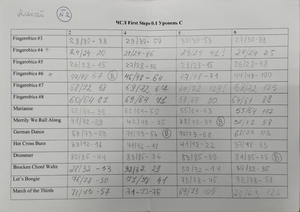 Чтение с листа альбом First Steps (таблица с результатами, 4 видео)