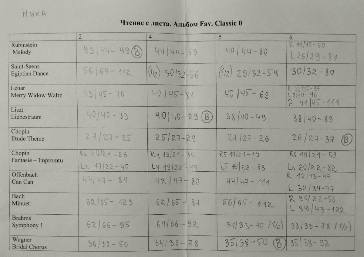 Работа с нотными карточками без засечек