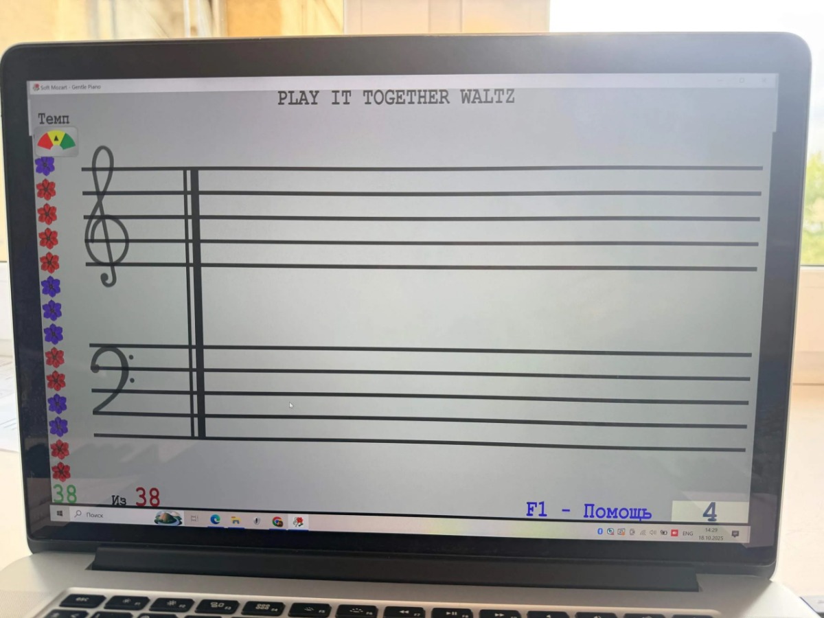 Занимается музыкой по программе софт Моцарт с 3-х лет.