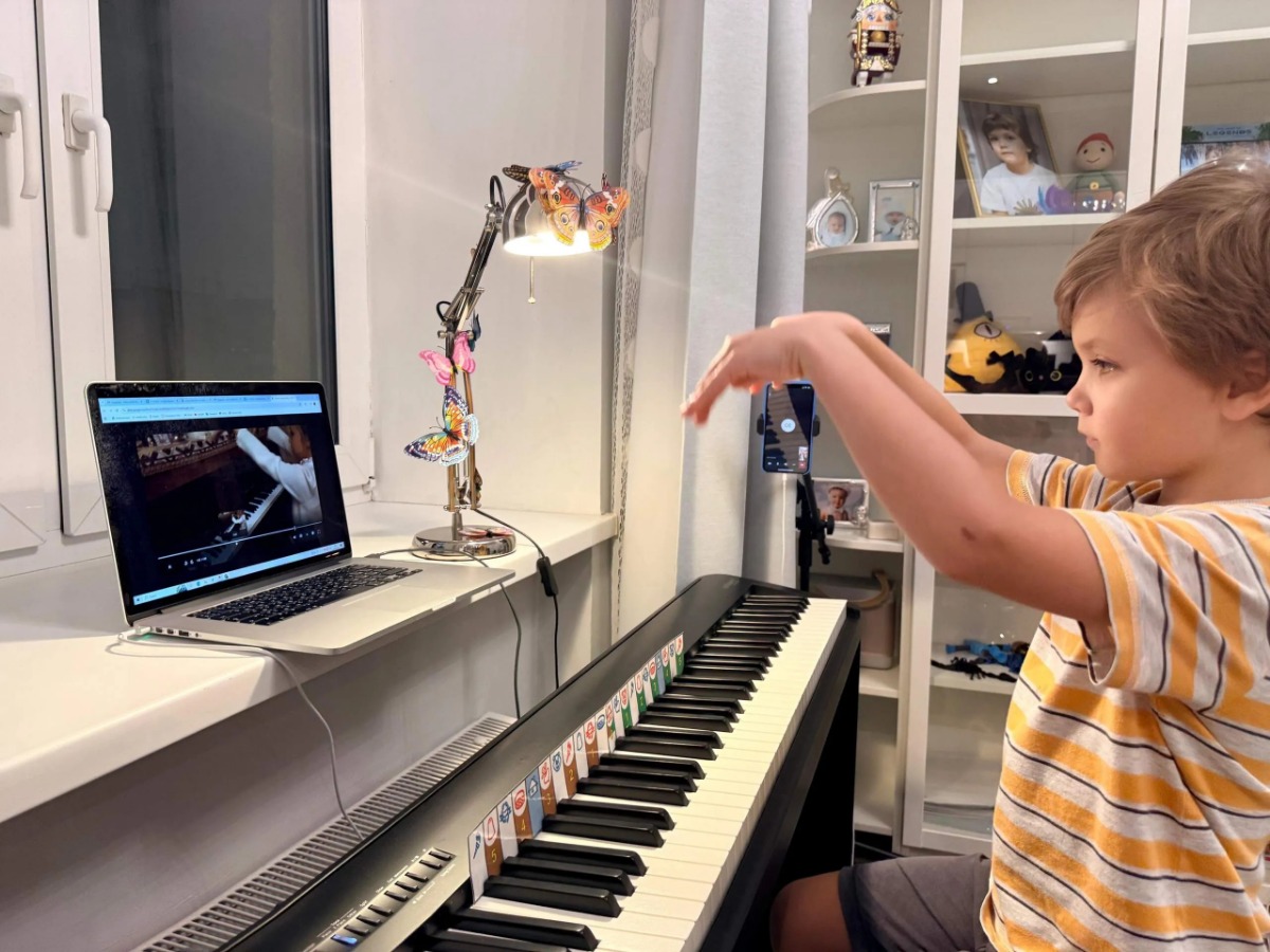 Кроме музыки, ребёнок занимается спортивной гимнастикой, шахматами, английским языком,
