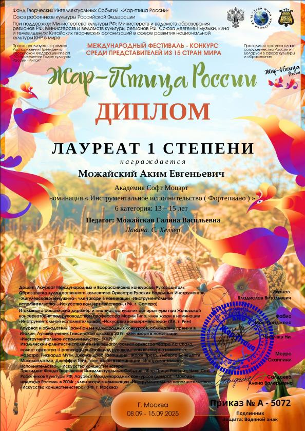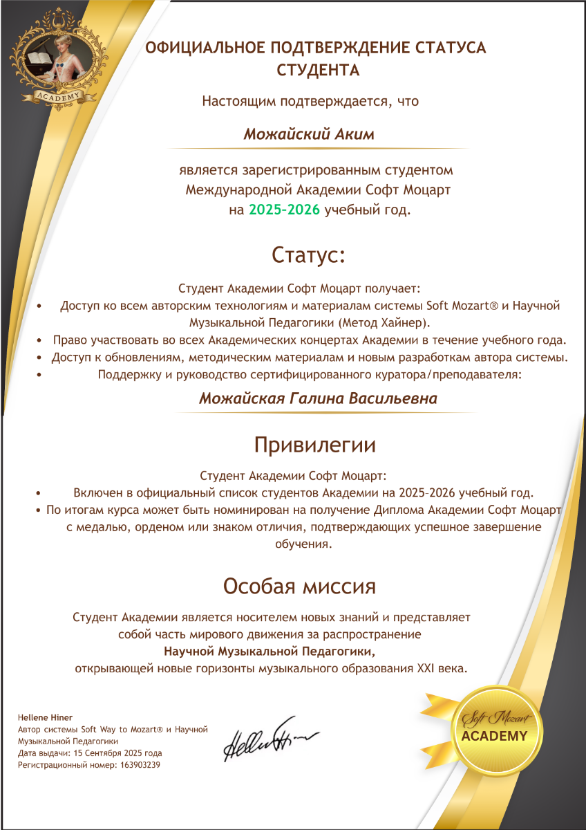 Наш студент Аким Можайский успешно завершил семь ступеней музыкального Лада в Академии Soft Mozart® и удостоен Медали Курьера — VII ступени! 🚀🎖