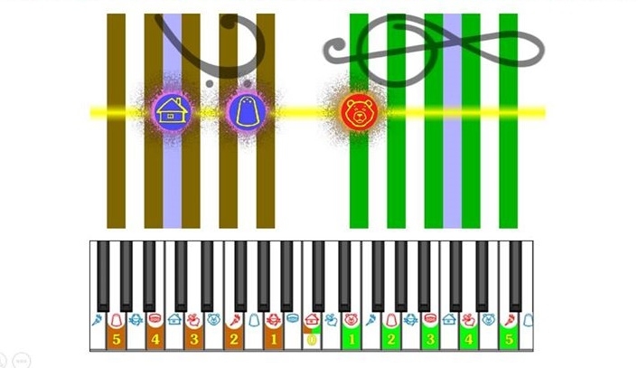 Система Нотоносца состоит из двух взаимосвязанных компонентов: символов (нотных знаков) и звуков (клавиш), басовый и скрипичный ключи - части одной единой симметричной системы, поэтому все эти компоненты должны быть отображены на одной иллюстрации.