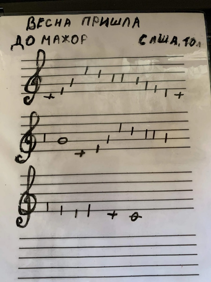 Запись нотами наизусть песенки «Весна пришла» в ДО мажоре.